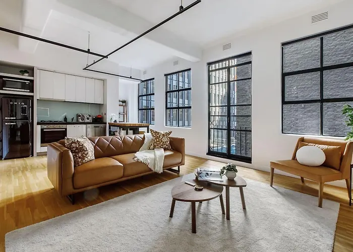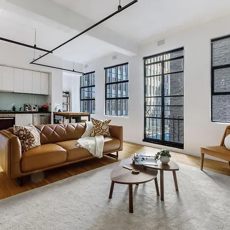 The 53 m² The Iron Loft On Collins - Heritage Industrial Charm Melbourne apartment is located in a busy area of Melbourne, about a 15-minute walk from Docklands Stadium.